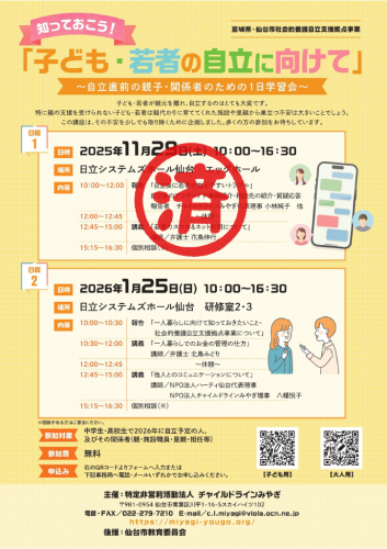 【イベント情報】知っておこう!「子ども・若者の自立に向けて」~自立直前の親子・関係者のための1日学習会~【11/29&1/25】
