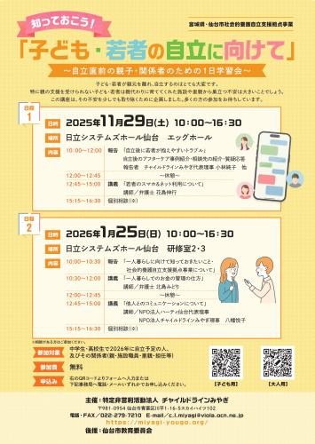 【イベント情報】知っておこう!「子ども・若者の自立に向けて」~自立直前の親子・関係者のための1日学習会~【11/29&1/25】