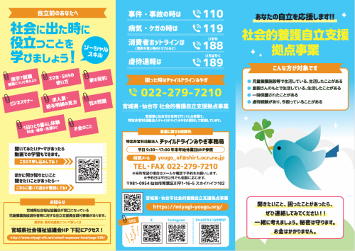 ◆対象者:児童養護施設等を退所、または里親のもとから自立した方